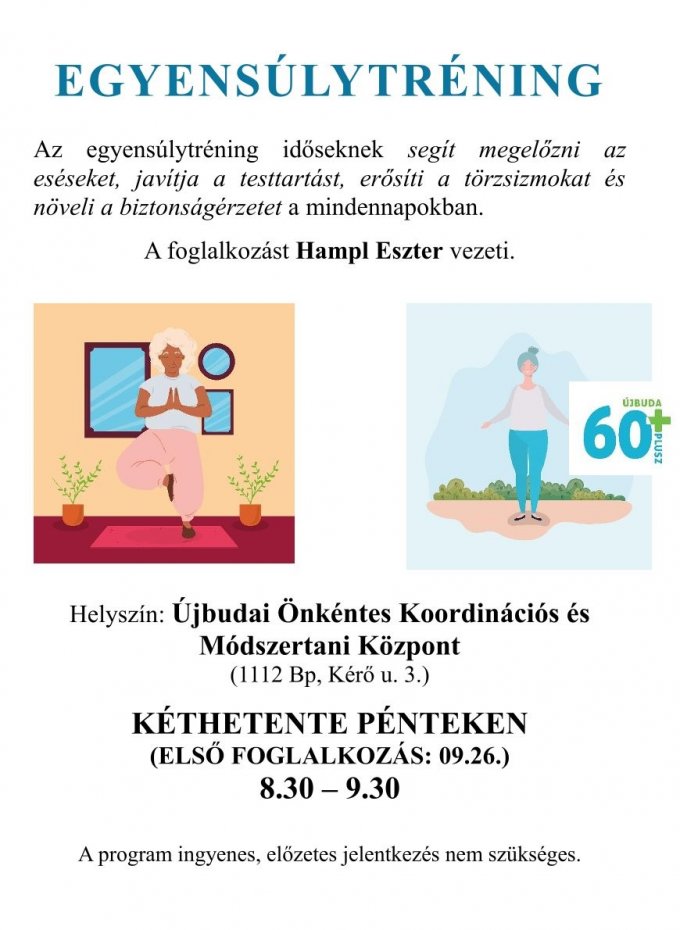 A nagy érdeklődésre való tekintettel már 2 helyszínen 2 hetente! 1. Csütörtök 11.10-12.10 között Újbudai Szenior Programközpont XI. Bölcső utca 3. 2. Péntek 8.30-9.30 között Újbudai Önkéntes Koordinációs és Módszertani Központ XI. Kérő utca 3. Címkék: 60+60+ ProgramegyensúlytréningEgyensúlykérőbölcső